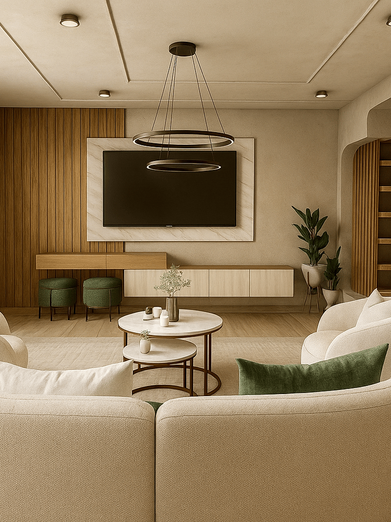 Estilo contemporáneo donde se integran tonos neutros, mobiliario curvo y elementos naturales.